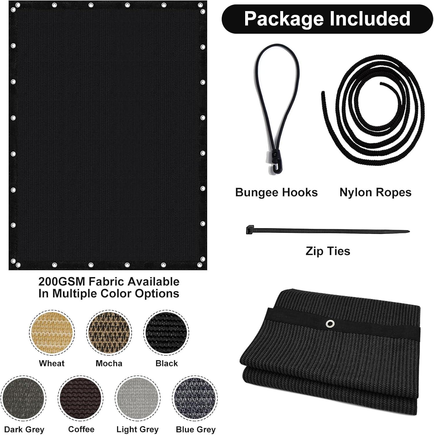 Durable & Heavy-Duty Material: Crafted from 200GSM high-density polyethylene (HDPE) with reinforced binding and stainless steel grommets, this sun shade cloth offers exceptional durability for outdoor use. Its permeable design allows rainwater to pass through easily, preventing water accumulation and sagging. Resistant to tearing and mild weather, it provides reliable sun shade and light wind protection season after season