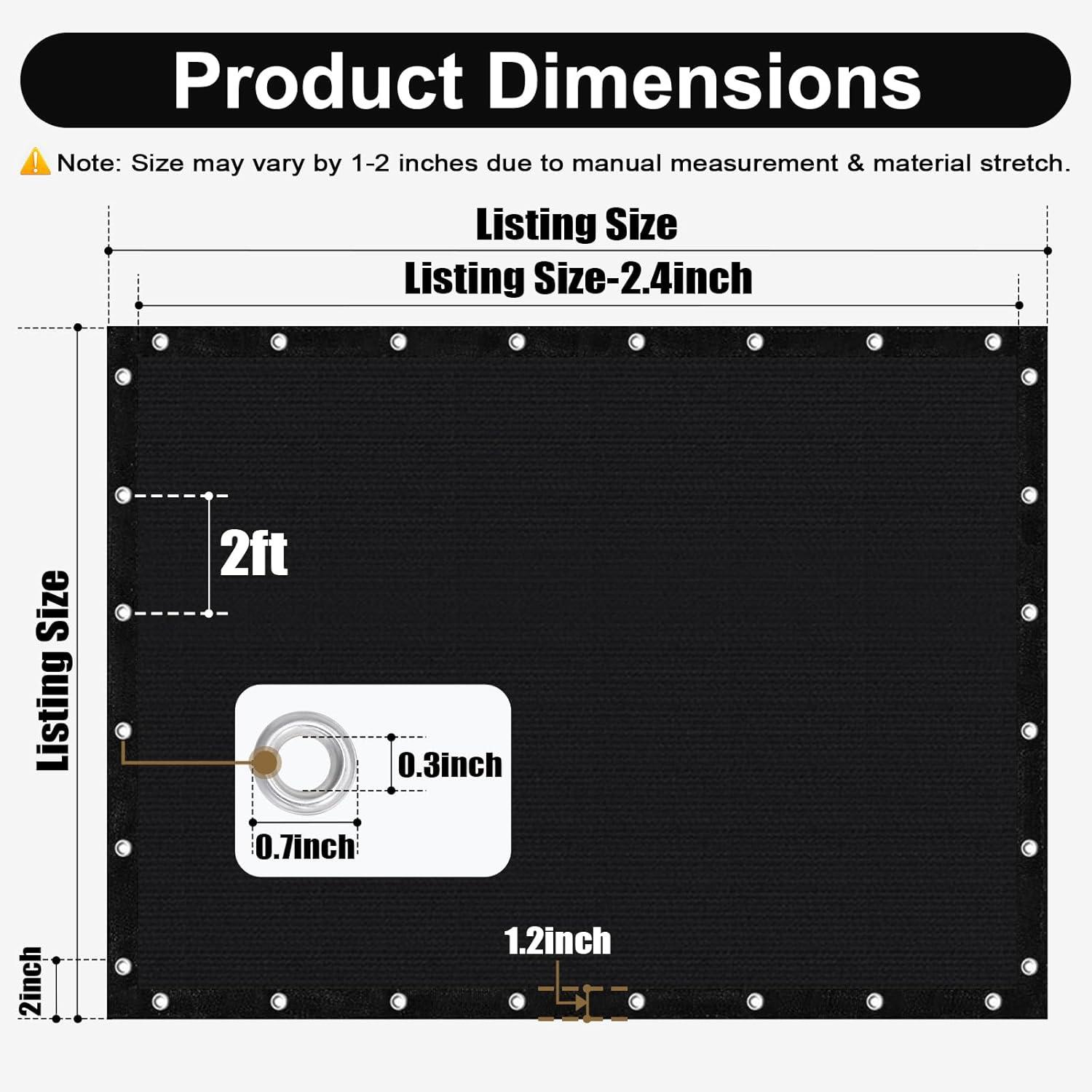 Easy Installation: Equipped with metal grommets spaced every 2 feet and including 3 types of fasteners (zip ties, ropes, and bungee hooks), setting up is a breeze. Simply attach the shade cloth to structures. Note: Minor creases may appear after unpacking—they’ll smooth out naturally after hanging in the sun for a short time